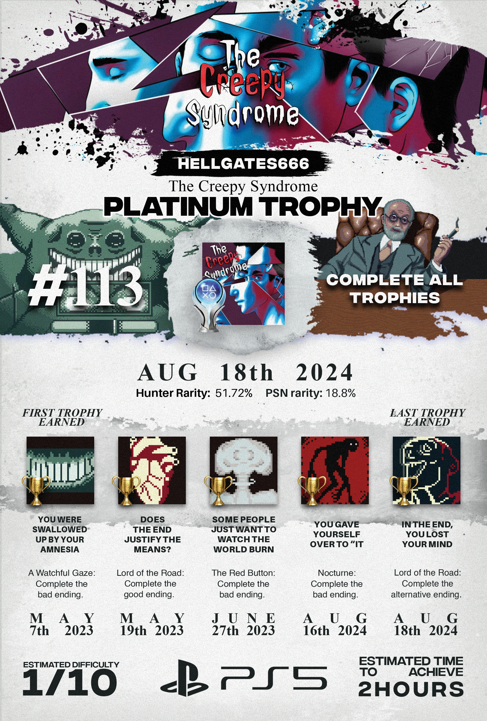 The creepy syndrome is composed of 4 short little horror games, each with their own unique gameplay and art styles. Unfortunately, none of them are fun, intriguing, captivating, or creepy. Each game is more of a chore to get through than the last, and none of the stories are even remotely interesting or well written. The puzzles are poorly designed and dull, and the small bits of “action” (if you can even call it that) are as bare-bones as you can get. There was potential here, and I kinda liked some of the art/music, but ultimately, the creepy syndrome fails in every avenue it chooses to explore.